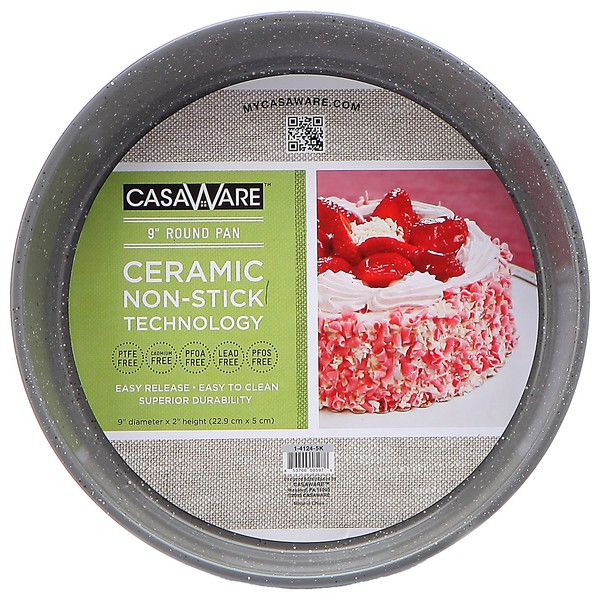casaWare Ceramic Coated NonStick 9-Inch Round Pan, Silver Granite