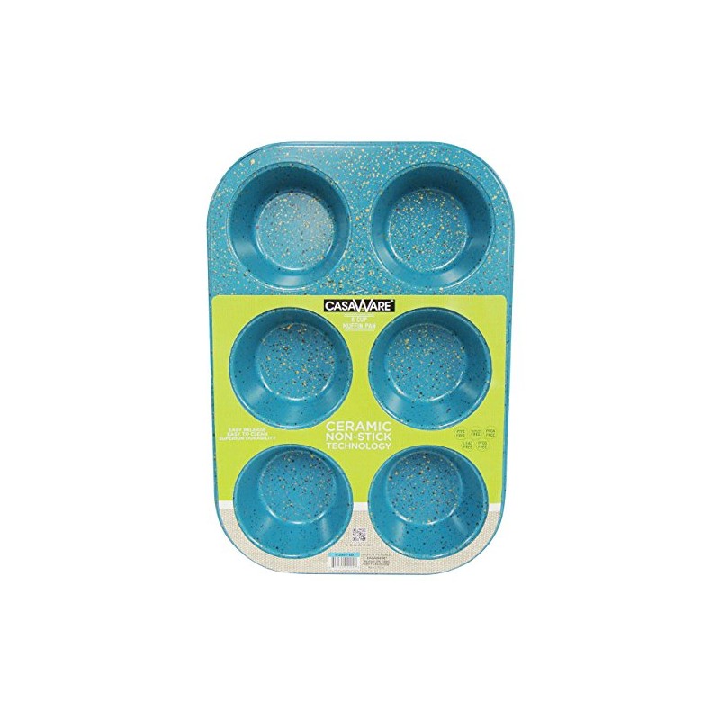 casaWare Toaster Oven 6 Cup Muffin Pan NonStick Ceramic Coated (Blue Granite)
