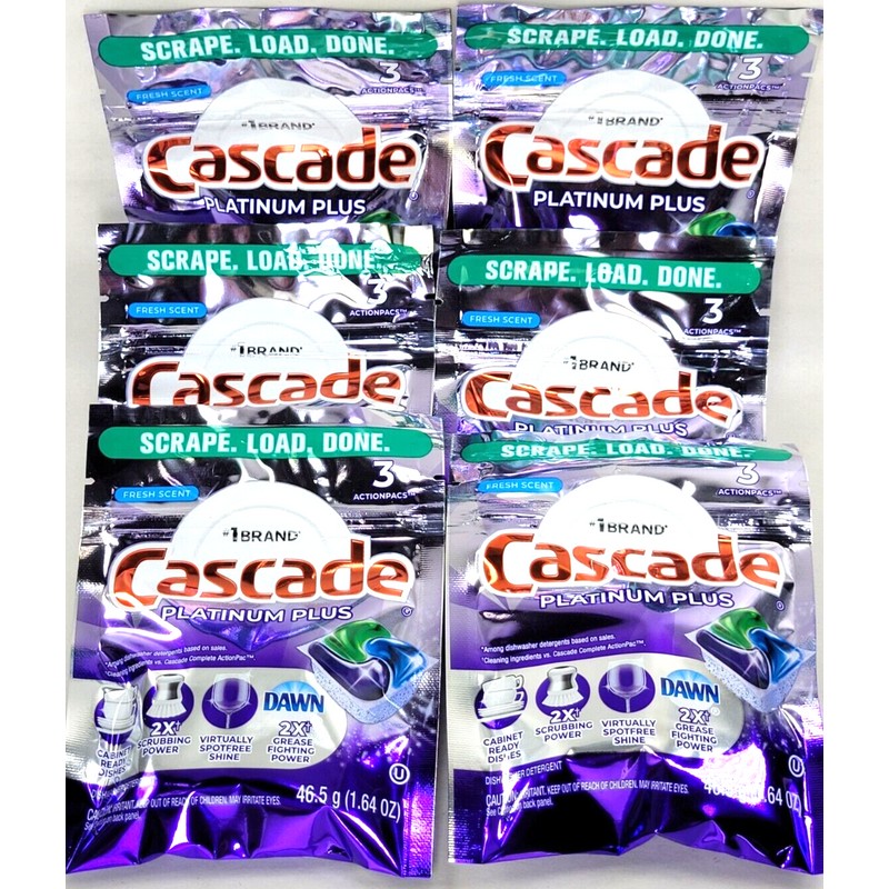 Cascade 18 Pods CASCADE PLATINUM PLUS ActionPacs FRESH SCENT (6 Packs x 3)