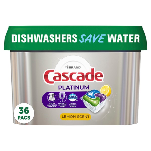 Cascade Platinum ActionPacs, Dishwasher Detergent Pods, Lemon, 36 count (Packaging May Vary)