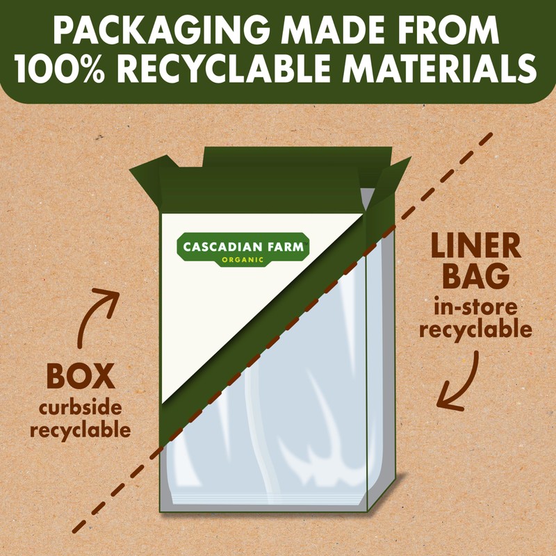 Bring big smiles and yummy flavor to mornings with every box of gluten free Cascadian Farm Organic Mini Cookies 'n' Creme Cereal. Each bowl of these wholesome, miniature cereal puffs is made with whole grain and bursting with cookies 'n' creme taste that your whole family can enjoy. A serving provides 17g of whole grain and has no artificial flavors or colors from artificial sources. This Cascadian Farm cereal is USDA Organic and made with Non GMO Project Verified ingredients. Pour a bowl with milk as a gluten free part of quick and easy breakfast. Pack handfuls of this crispy cereal in a snack tote to take the goodness to go. Always Organic. Never Ordinary. That's been our mantra since 1972. Since then, we've remained a producer of organic cereals, fruits, vegetables, granola and snack bars. Cascadian Farm is a pioneering supporter of farmers who use practices that regenerate the land and their communities. At least 48g recommended daily.