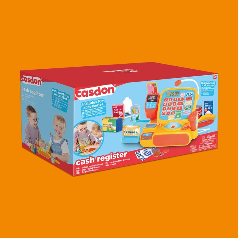 Casdon Cash Register. Toy Shopping Till Set with Working Calculator, Scanner, Pretend Money, Play Food, and More. Suitable for Preschool Toys. Playset for Children Aged 3+