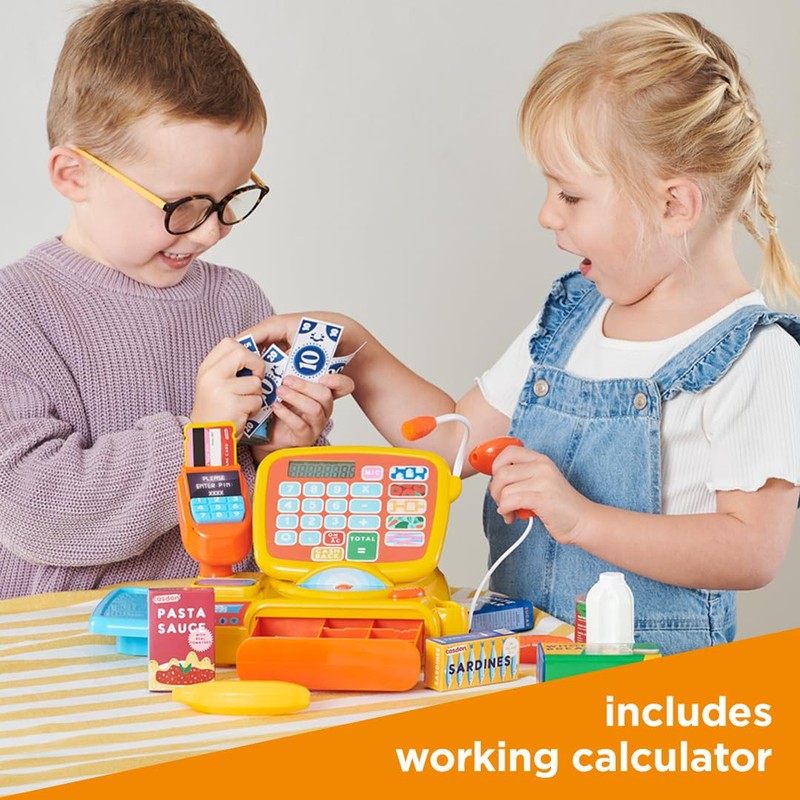 - LEARN THROUGH PLAY: Little ones will love interacting with this toy cash register's functions and features that will help them learn and develop valuable skills from early counting, measuring, social skills, and fine motor skills