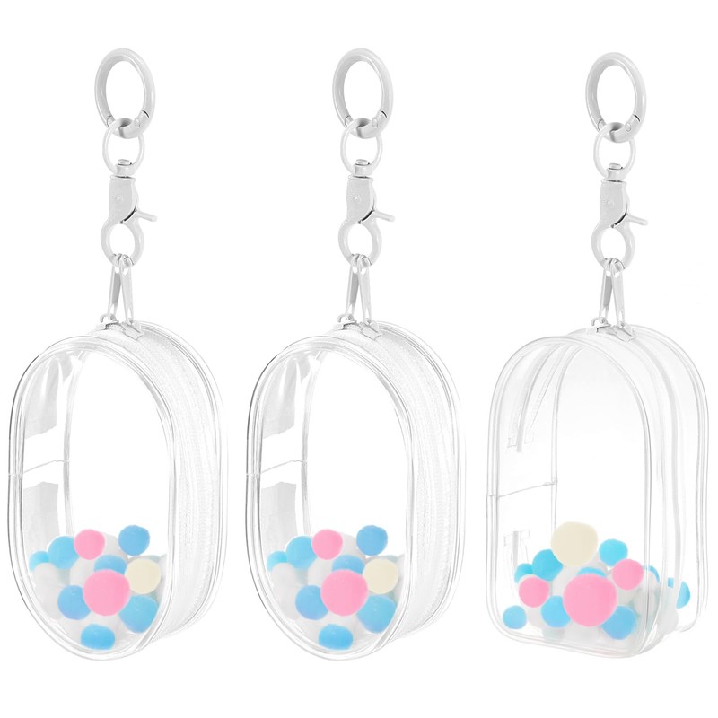 Case, Bag, Pain Bag, Set of 3, Sewn Pouch, Dustproof, Going Out, Doll Holder, Key Holder, Fully Transparent, PVC, Active Zipper, Pom Pom Ball Included, For Stuffed Animals