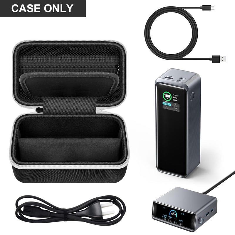 - Comprehensive protections for 27650mAh power bank: Built-in a removable partition to store charger station for multiple devices with for anker cables separately, from scratches caused by friction between attachments; Zippered mesh pockets keep safely for anker charging base, for anker usb c cable and usb to usb c adapter together; Plus a middle baffle prevents for anker desktop charger screen from being scratched
