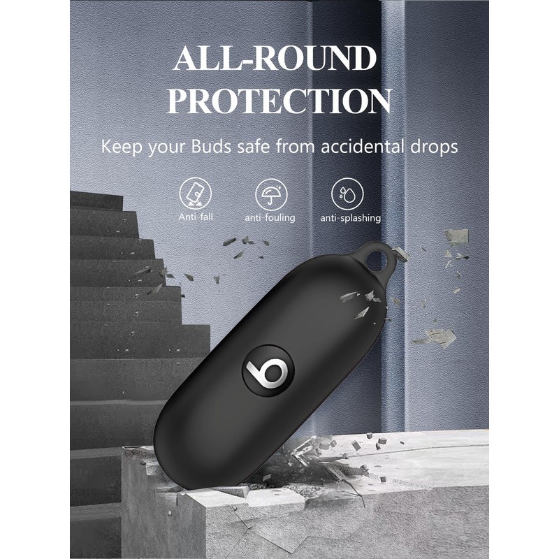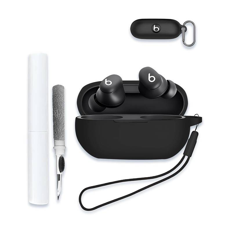 Case for Beats Solo Buds 2024 New Headphone, Soft Silicone Protective Portable Scratch Shock Resistant Shell with Cleaner Kit & Carabiner & Lanyard,Black