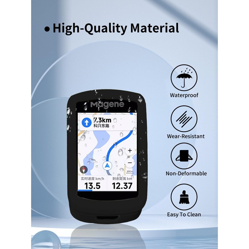 Case for Magene C606 Cycling Computer, Sillence Material,Shock-Absorbing and Anti Drop Protection Soft Half Shell,with Screen Protector,Black.