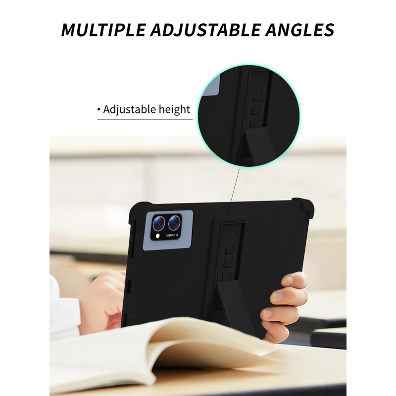 Case for Winsing T30W Android 15 Tablets 10 inch,WUNIAK Shock Proof Lightweight Stand Rubber Shell Protective Cover,Kids Friendly Soft Silicone Adjustable Stand Cover,Black