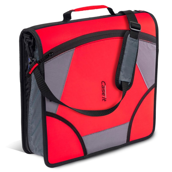 Case-it King Sized Zip Tab School Zipper Binder | 4-Inch D-Rings, 800 Sheet Capacity, 5-Subject Expanding File Folder, Multiple Pockets & Storage Organizer, Shoulder Strap | D-186 Fire Engine Red
