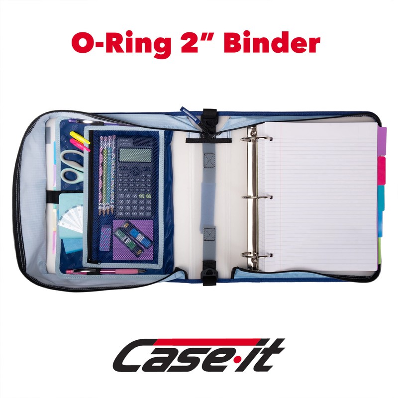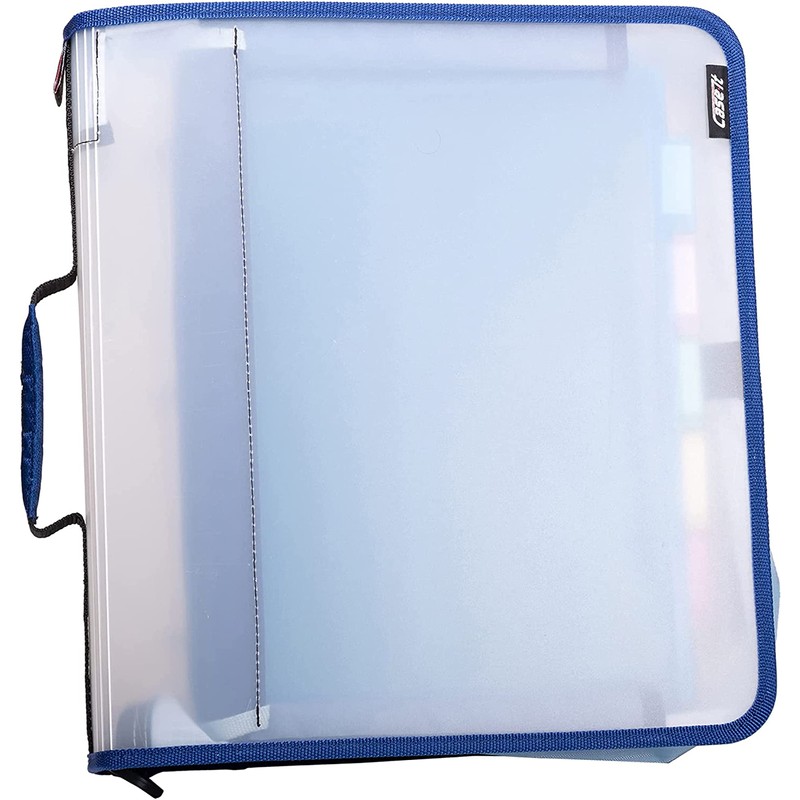 • OFFICE SUPPLIES: Case-it’s Translucent Go Zipper Binder with the color blue has a standard O-ring size of 1 inch and holds up to 425 - 430 sheets of paper