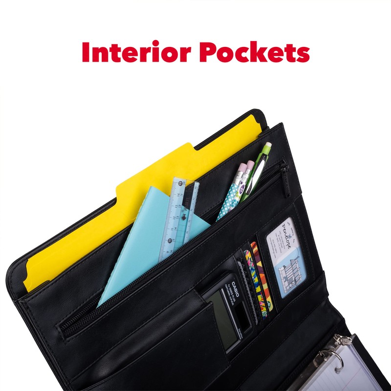 - PADFOLIO 3-RING BINDER FEATURES: This 11 x 13.5 x 2.85" padfolio binder has a removable 3 ring binder with 1-inch O-rings; letter size writing pad; a durable faux leather exterior; a professional tri fold snap closure to keep contents secure; interior zipper pocket that holds any small items you want! It also contains a protective document pocket, business card and ID slots, a small pocket that can hold a phone or calculator, and a pen loop for easy access