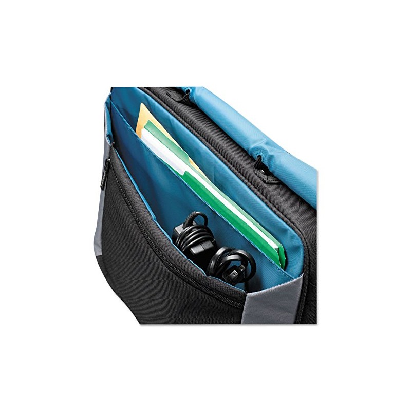 - Padded, zippered pocket on the back of the bag securely holds a laptop with up to a 17" screen.