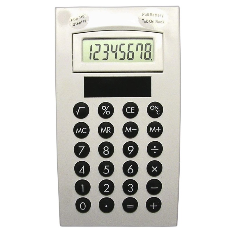 CASE of (12) - Solar Powered Calculators, Flip-Up Display, Battery Backup, White