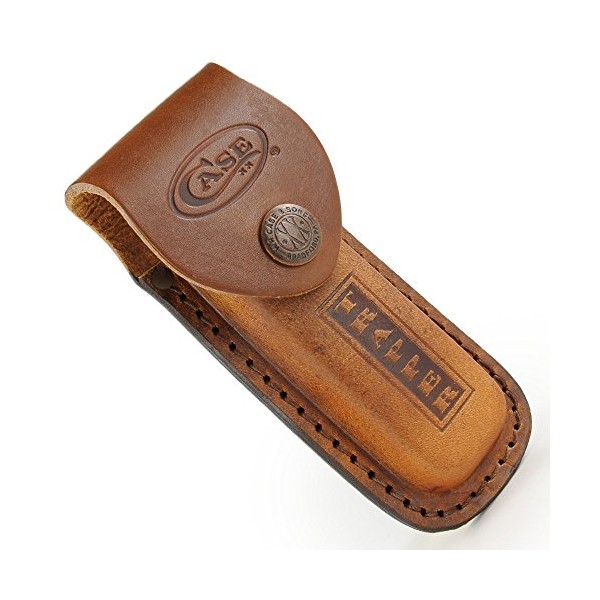This genuine leather sheath is an essential accessory to any small size pocket knife. It was designed with the Trapper in mind. Great for protecting and storing your pocket knife for quick and easy access. The genuine leather belt sheath is stamped with "Trapper" and the Case Logo. Comes packaged in a poly bag with zip lock. Made in Bradford, PA, USA from domestic and imported materials.