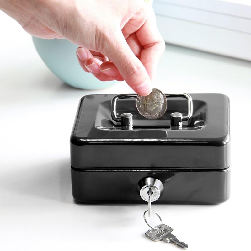 - Perfect gift: lockable money box makes friends and family happy with a practical and safe gift. The cash box is ideal for storing money, jewellery and other valuables.