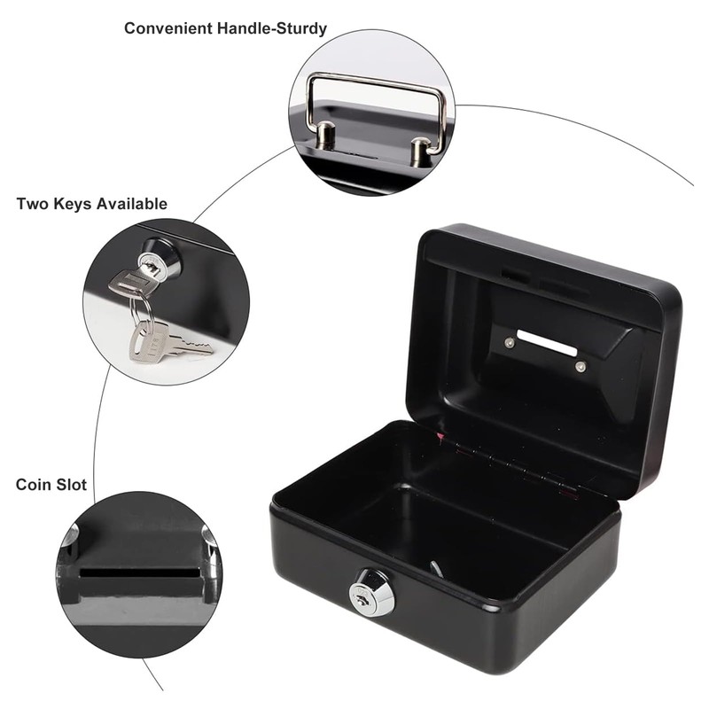 - Easy to carry: small money box. Thanks to the practical handles and compact size, the cash locking box can be easily transported. cash register with slot. Ideal for everyday use or flea markets.