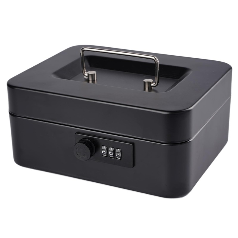 - 💰【CASH BOX WITH COMBINATION LOCK】: The locking cash box features a combination lock with 3-digit code, which is simple to set and change, no need keys for entry, the cashbox is very convenient to use.