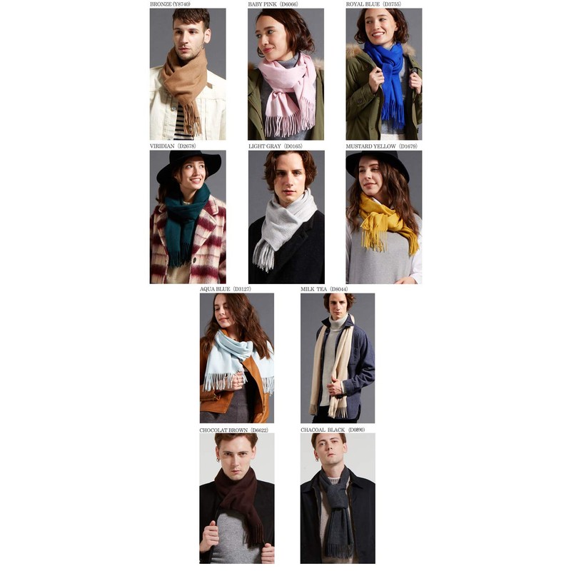 Cashmee Ciel Finest Quality 100 % Cashmere Basic Weave Scarf Plain 17 Colors. - charcoal