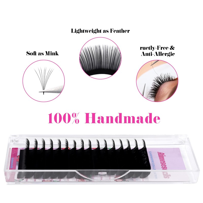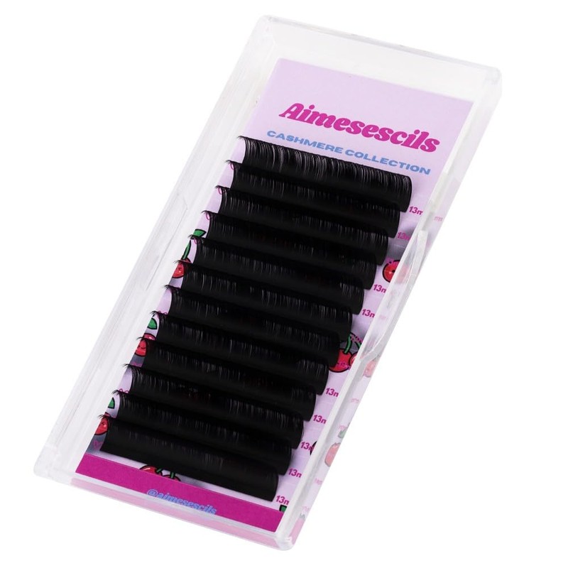 Cashmere Collection Volume Lash Extensions, 0.03/0.05/0.07 CC/C/D Curl, 8-16 mm Single Length, Cashmere Black, 12 rows (CC 0.03, 8mm)