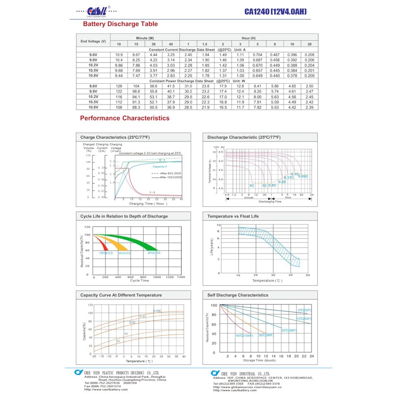- Casil 12V Sealed Lead Acid (SLA) rechargeable maintenance free battery.