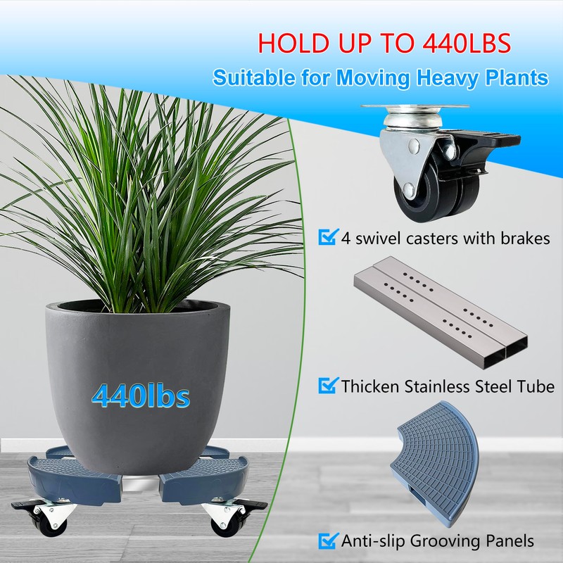 - 【Upgraded Hardware】CASIMR rolling plant stand is made of larger ABS panel, larger section sized stainless steel tube, and 1.9 in heavy duty 360°swivel casters, which makes our plant dolly has 440 pounds load-bearing capacity, much higher than ordinary plastic planter bases. Non-slip grid panel can effectively prevent flowerpot slip and ensure security. Heavy duty caster is friendly for floor, marble.