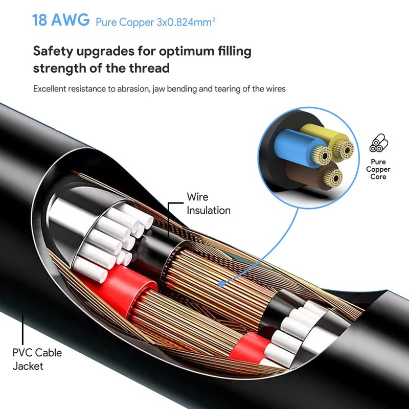 Power up your devices with confidence using our robust power adapter cable. Specially crafted with a thick and wear-resistant design, this cable ensures a reliable and long-lasting charging experience. Say goodbye to flimsy and fragile cables that easily break or fray. This cable is built to endure.