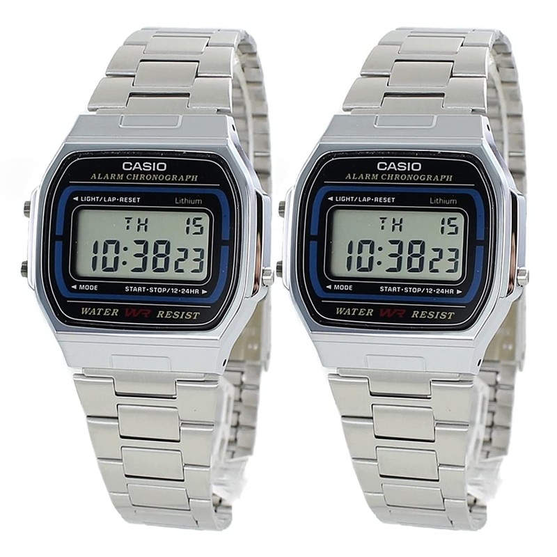 - ■Brand: Casio (CASIO) ■Product Model Number: A164WA-1QJH (*This is a set of 2 same models) ■Quartz (battery powered) ■About battery replacement: This model is possible at a mass store watch store or at your nearest watch store. ■ Band Adjustment: Adjustable with sliding clasp. If it is difficult to use, it can also be adjusted by a watch shop etc. ■Functions: Stopwatch, alarm, auto calendar, back light ■Waterproof: daily water resistance ■Size (approx.) Watch width: 1.3 inches (32 mm) Strap wrist circumference: minimum 5.5 inches (14 cm) to maximum 7.9 inches (20 cm) ■Brand exclusive box. *Brand box may vary depending on the production date. Thank you for your understanding. ■Warranty: Japan Warranty/Overseas model