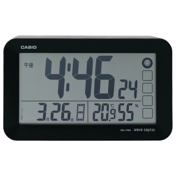 CASIO DQL-170NJ-1JF Alarm Clock, Radio Wave, Black, Automatic Lighting, Digital Snooze, Light Included