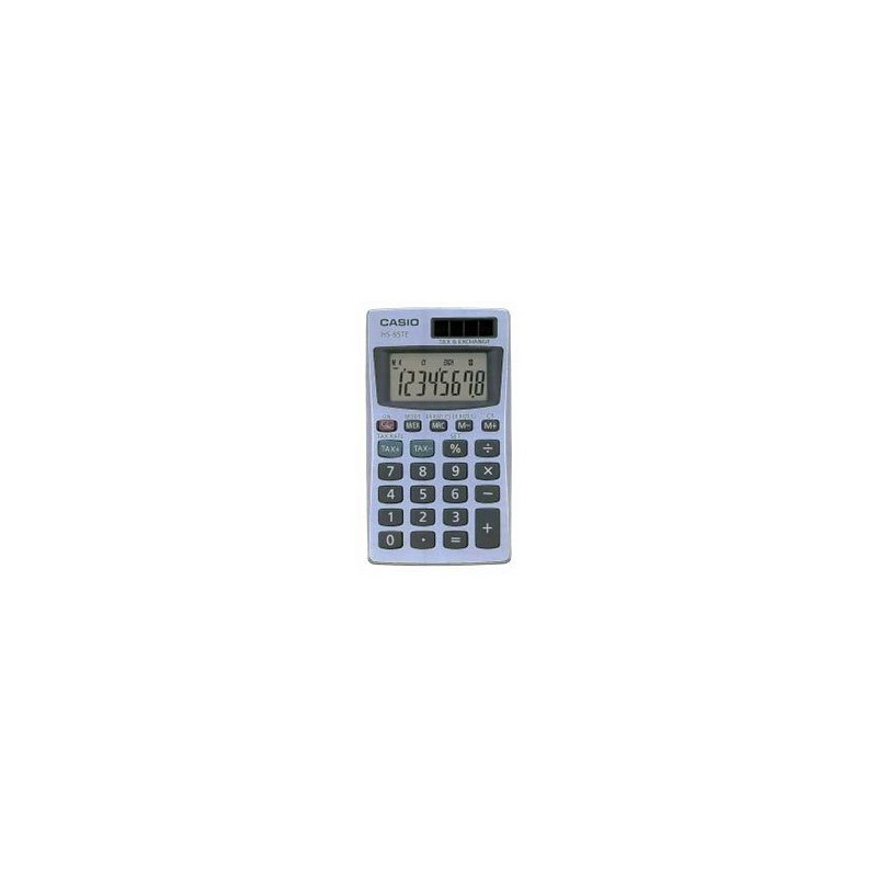 - Casio 8 digit pocket calculator hs85tecompact, easy to use, dual powered with plastic keys, ideal for everyday calculationsfeatures include tax functions, currency conversions and auto power offbattery includedmeasures 190mm length by 170mm width by 20mm height