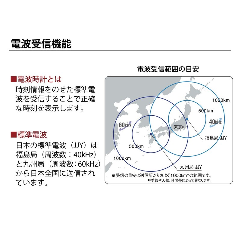 - Features: Radio reception function (automatic reception / manual reception), radio wave reception indicator , radio wave reception ONOFF function, temperature measurement display, humidity measurement display, life environment notification function (icon display), calendar display, third-day display, six-day display, calendar bulk-day display, calendar display (1 month), calendar search function, western and original display, 12/24-hour display switch, and can be used as a set up