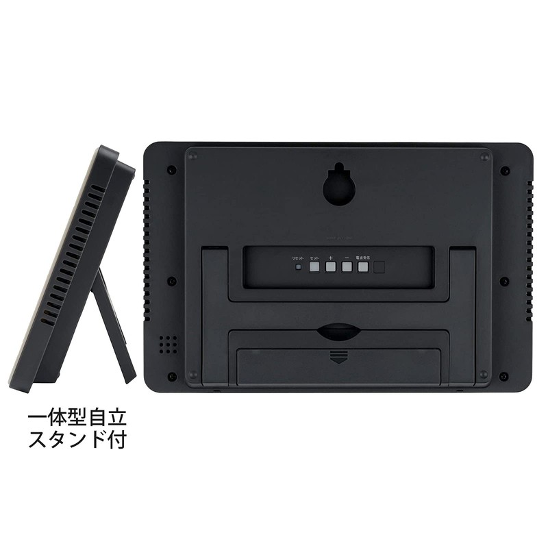 - Features: Radio reception function (automatic reception / manual reception), radio wave reception ONOFF function, temperature display, humidity display, life environment notification function (icon display), calendar display, 12/24-hour display, can be used as a stand