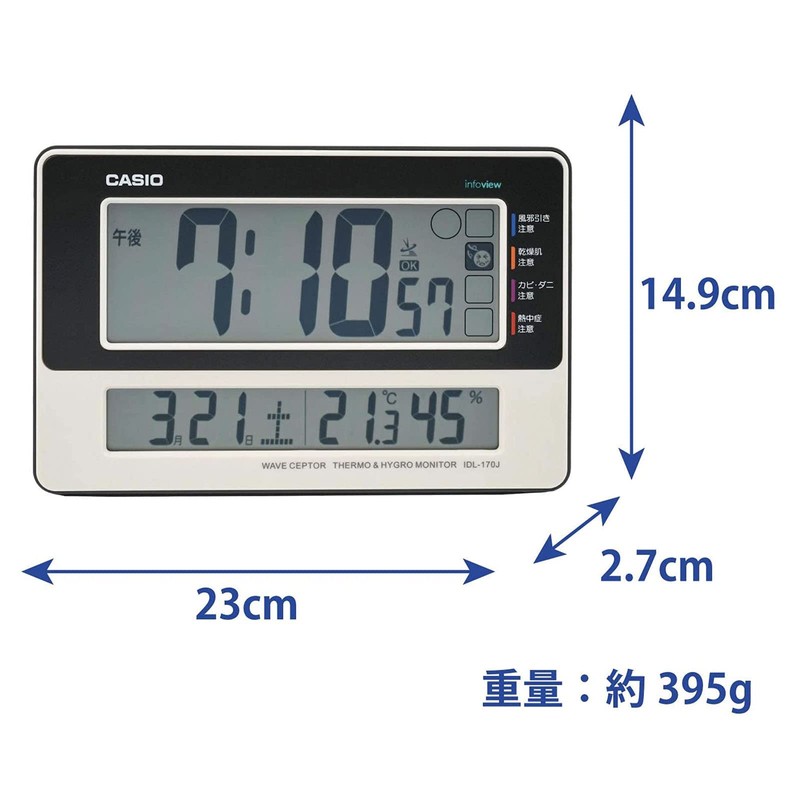 CASIO IDL-170J-7JF Table Clock, Radio Clock, White, Digital Temperature, Humidity, Calendar, Display