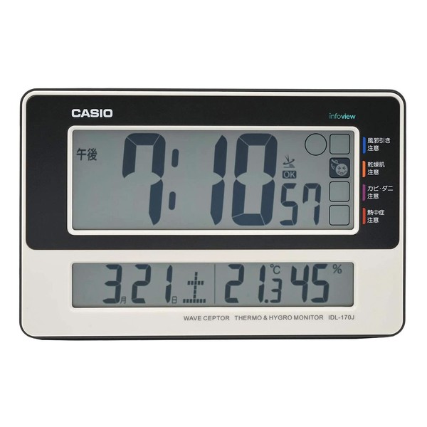 CASIO IDL-170J-7JF Table Clock, Radio Clock, White, Digital Temperature, Humidity, Calendar, Display