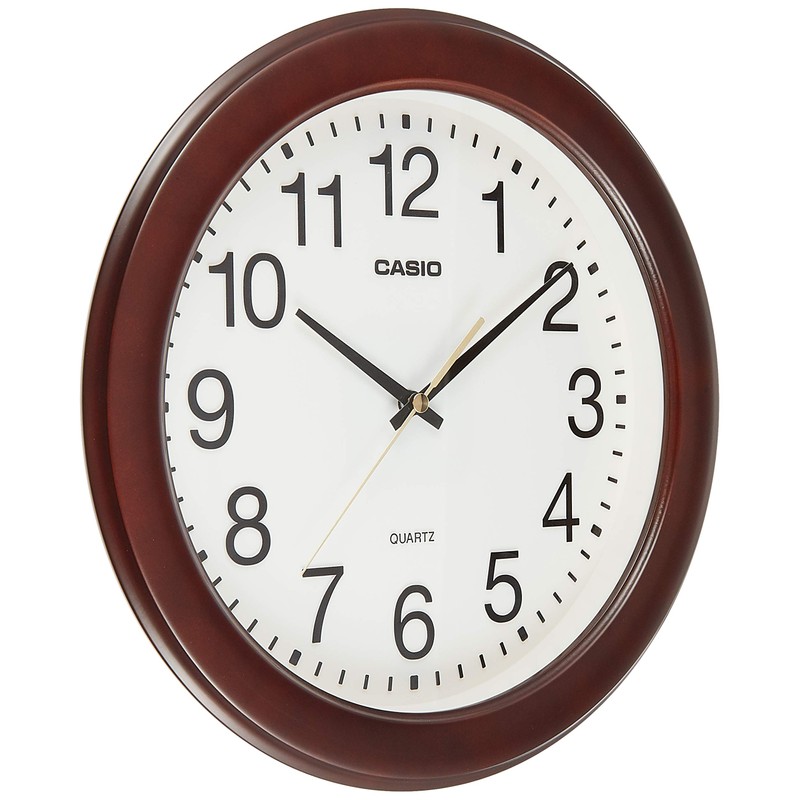 Casio IQ-132-5JF Dark Brown Analog Wall Clock, Diameter 11.6 inches (29.5 cm), Wooden Frame, Silent, Continuous Second Hand