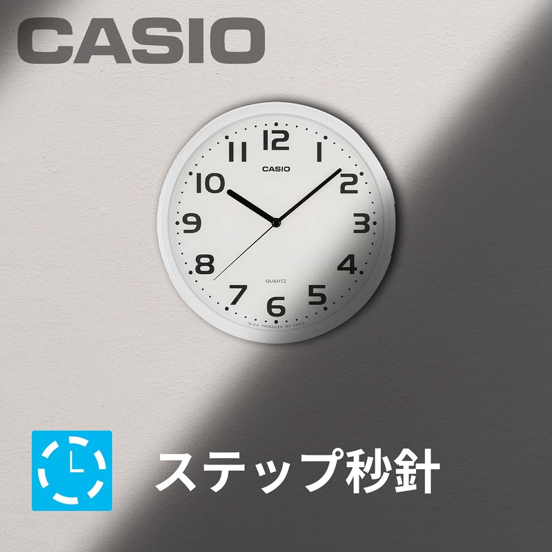 CASIO IQ-24-7JF Wall Clock, White, Analog, Standard, Step Second Hand