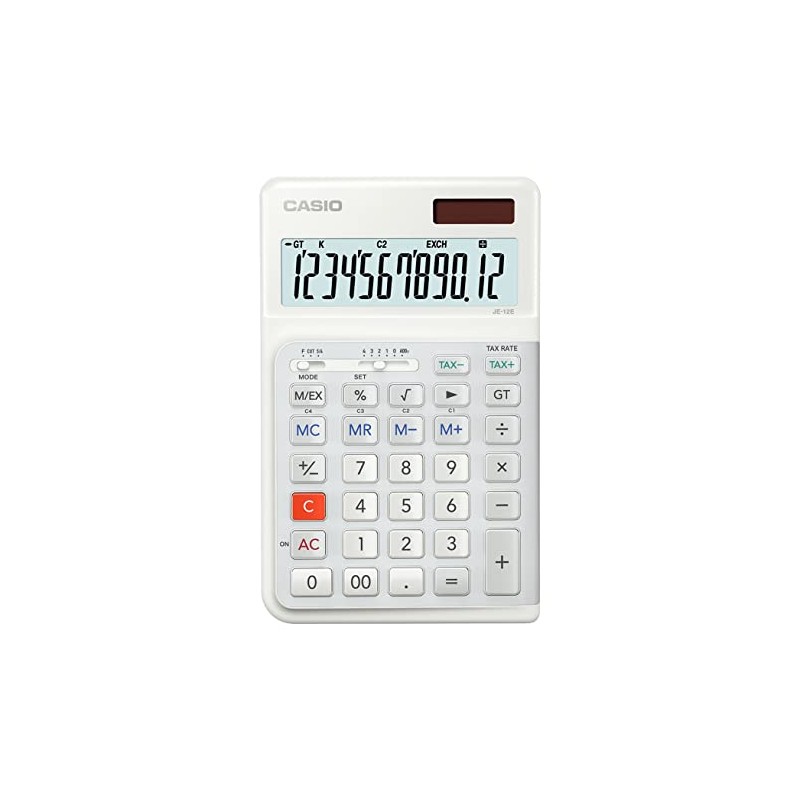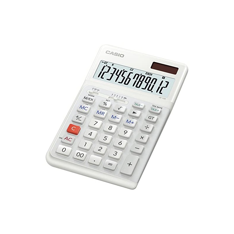 • ALL NEW CASIO JE-12E-WE (MEDIUM SIZE), High-Quality Ergonomic 12-Digit Desk Calculator