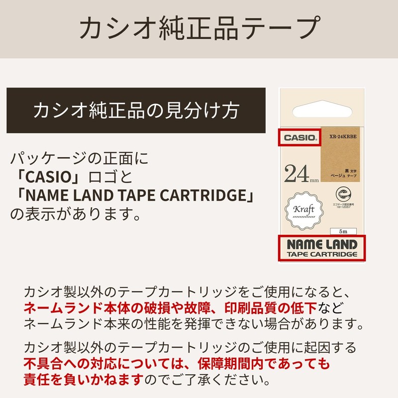- To maintain the performance and stability of the NAMELAND please always use genuine CASIO tape cartridges. If you use a tape cartridge other than Casio products you may not be able to demonstrate the original NAMELAND performance, such as adverse effects on the main body or poor print quality