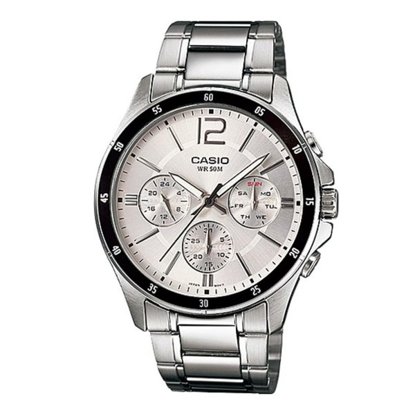 Casio #MTP1374D-7AV Men's Standard Metal Band Multi-Function Silver Dial Watch