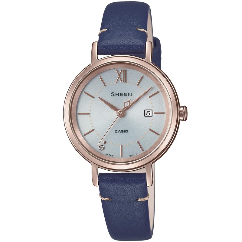 Casio SHS-D Series Solar Wristwatch Scene, navy leather, Bar Index