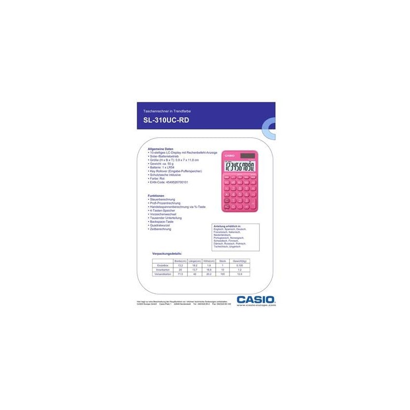 Casio sl-310uc-rd – Pocket Calculator, 0.8 x 7 x 11.8 cm, Red