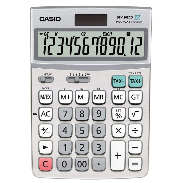 Casio Tischrechner DF-120ECO, 12-stellig, umweltfreundlich, Steuerberechnung, Solar-/Batteriebetrieb, farbe