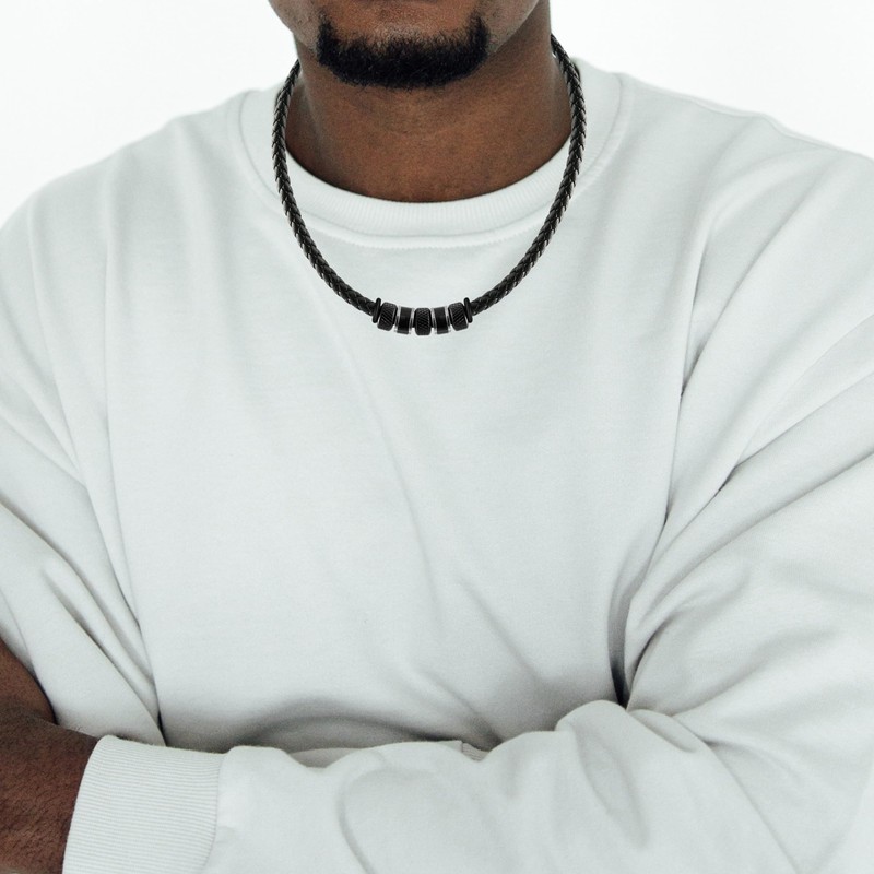 Casisto.Men's Leather Necklace Pendant Necklace, Black Cord, Stainless Steel, Jewellery Gift Box, 45, Stainless Steel, No Gemstone