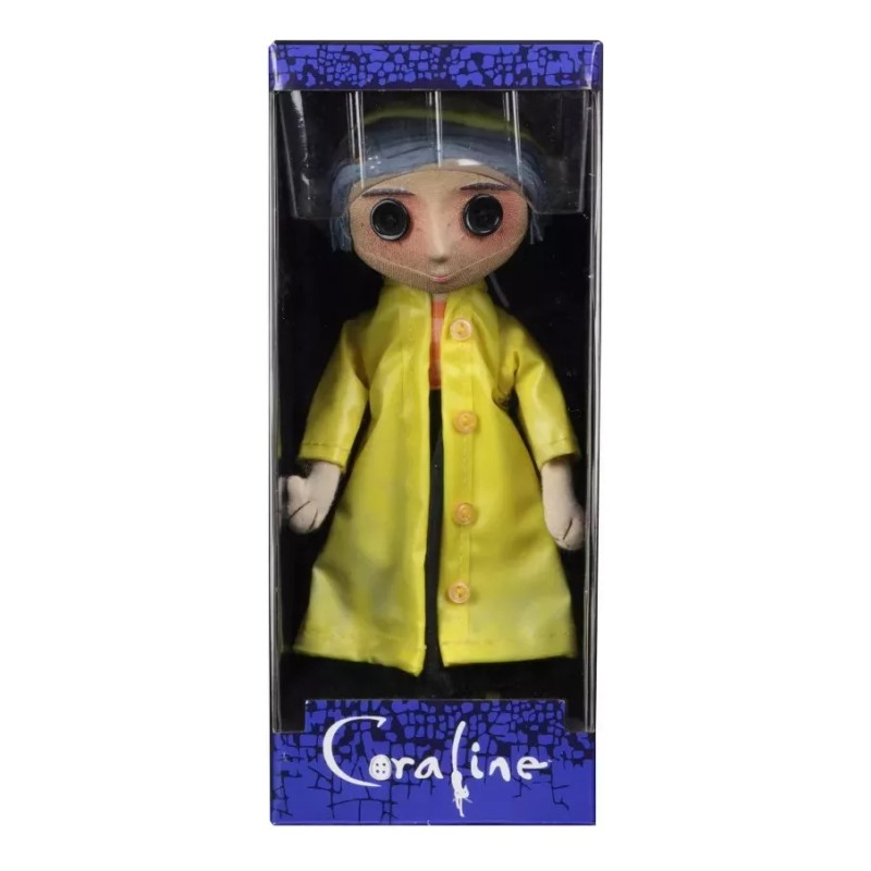 ¡Trae a casa el extraño mundo de Coraline! Esta réplica detallada de la muñeca de Coraline proviene de la adaptación cinematográfica stop-motion del divertido y espeluznante libro de Neil Gaiman. Reproduce con cariño la muñeca tal como se ve en la película, desde el pelo de hilo y los ojos de botón hasta el impermeable amarillo extraíble. La muñeca tiene una armadura de alambre oculta para que puedas posar sus brazos, piernas e incluso su impermeable. Más de 9" de alto. Un gran objeto de colección para fanáticos de todas las edades.