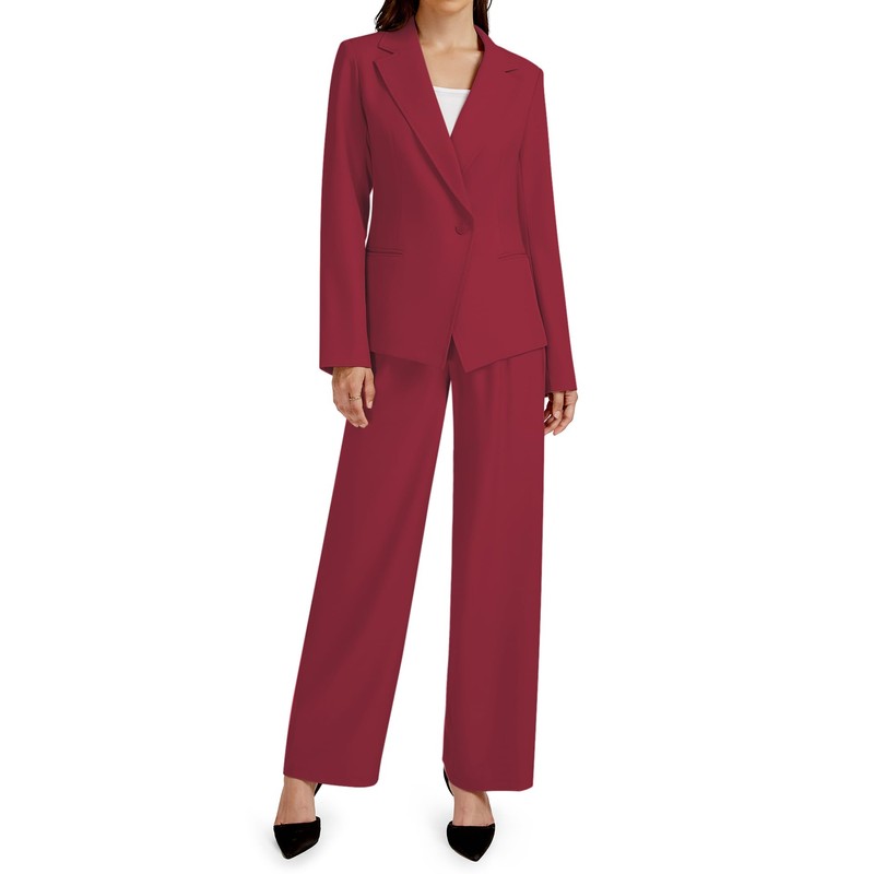 Casly Lamiit Womens Sets 2 Piece Outfits Business Casual Pantsuit Notched Collar Blazer Jacket Palazzo Pants Matching Set Dressy Wedding Spring Clothing Wine Red XL