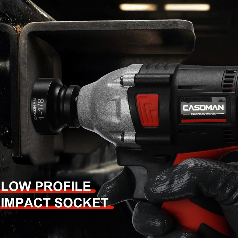 This CASOMAN 1/2" Drive x 1-1/8" Stubby Impact Socket delivers impact-grade durability with its drop-forged and heat-treated Cr-Mo steel construction. Featuring a corrosion-resistant black phosphate finish, it offers long-lasting protection, while permanent laser-etched size marking remains clearly visible even in in dim or busy workspace. Its 6-point flank drive design maximizes grip on fastener flats, eliminating rounding during high-stress removal. Compatible with impact wrenches and drivers, this tool is your ultimate solution for automotive maintenance and repair tasks.