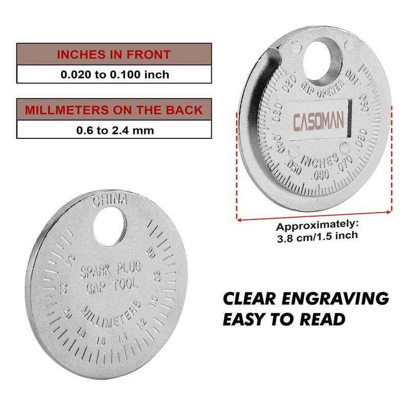 The scale range of this spark plug space gauge is from 0.020 to 0.100 inch, and the metric is from 0.6 to 2.4 mm, accurate and easy to read.