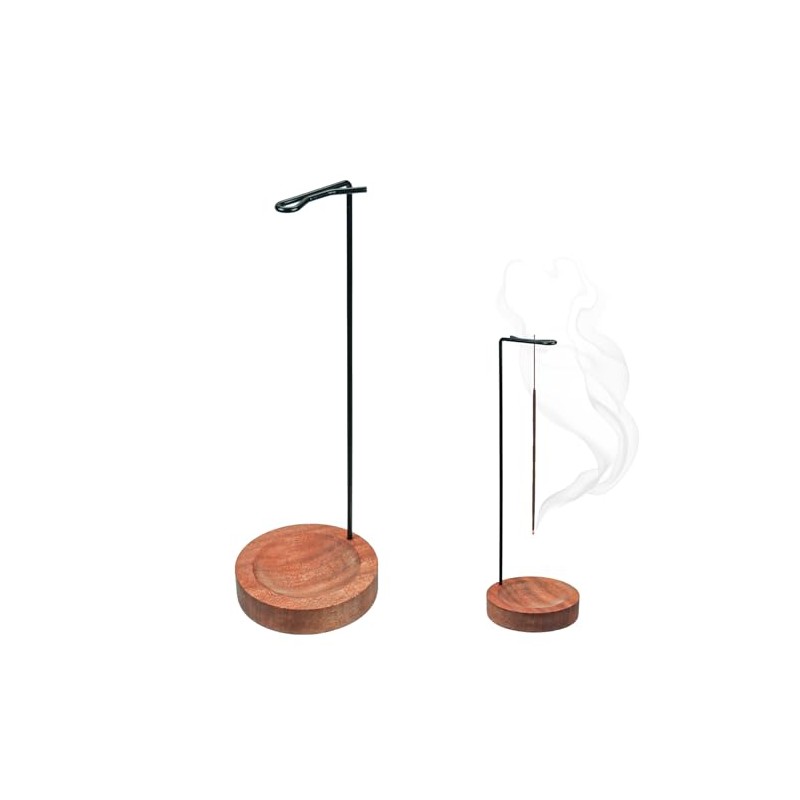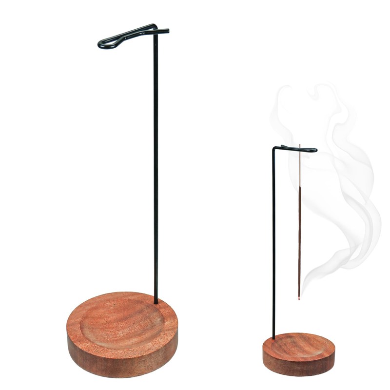 - DESIGN FEATURES: Upright metal rod with curved tip securely holds incense sticks, whilst wooden base catches falling ash