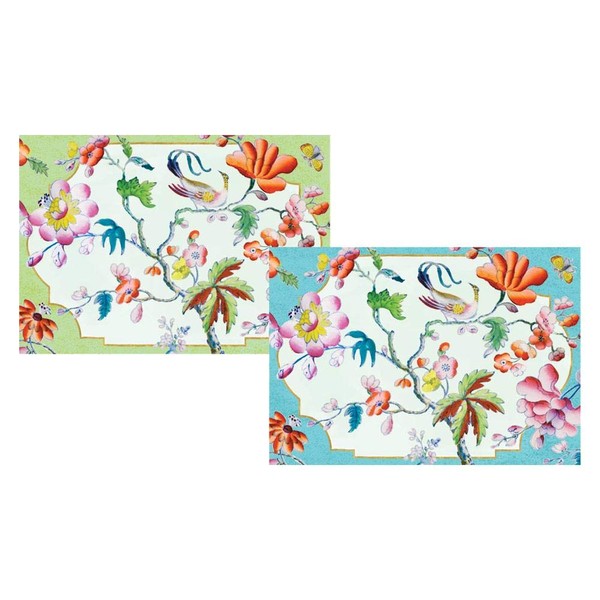 Caspari 8 Greeting Cards Notelets Blank & envelopes - Summer Palace Birds and Flowers