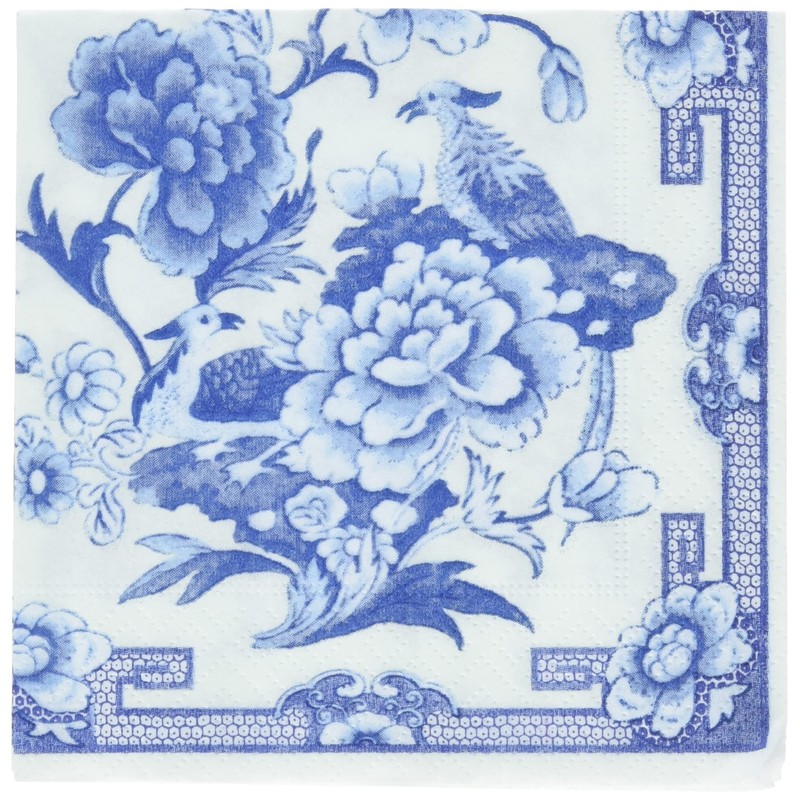 Caspari Cocktail Napkin, Blue/White