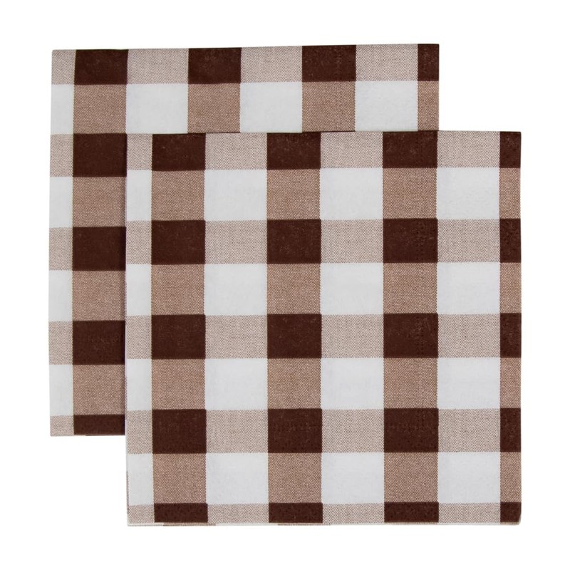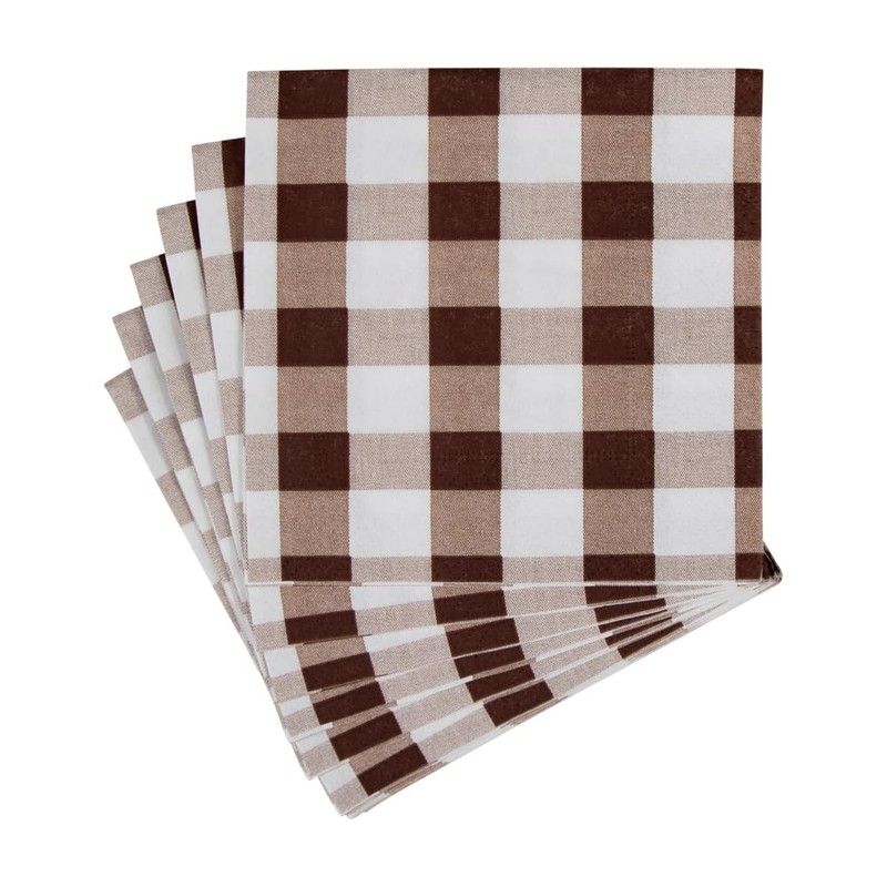 Caspari Gingham Paper Cocktail Napkins in Chocolate - 20 Per Package, 2 Packs
